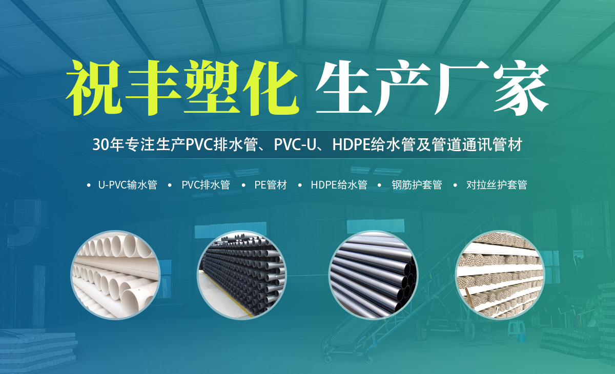 安陽市祝豐塑化有限公司坐落在滑縣工業園區,東臨大廣高速,西臨京珠高速,是鄭州、鶴壁、安陽、濮陽四個城市的輸紐,交通便利、環境優美。       公司始建于八十年代,經過二十余年的艱辛創業,規模不斷壯大,由十多萬元資產的小廠,發展到現占地面積達一萬多平,建筑面積一萬平,資產2000多萬元管材生產企業。公司生產PVC-U、PVC排水管、HDPE給水管、鋼筋護套管管道通訊管材等產品,廣泛用于農田節水、高山引水、人畜用水、建筑、電力通訊等多種用途,品種齊全。為了滿足用戶需求,可承攬各種給水、節水、灌溉工程。“祝豐塑化”憑借強勁的實力,優良的管理水平。“以質量求生存,以信譽求發展”的原則全力以赴和大家共同塑造美好未來。..